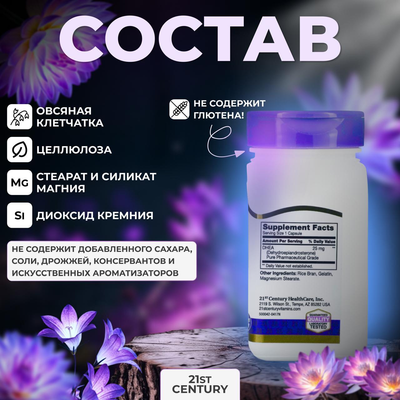 21st Century, ДГЭА, DHEA, 25 мг, 90 капсул