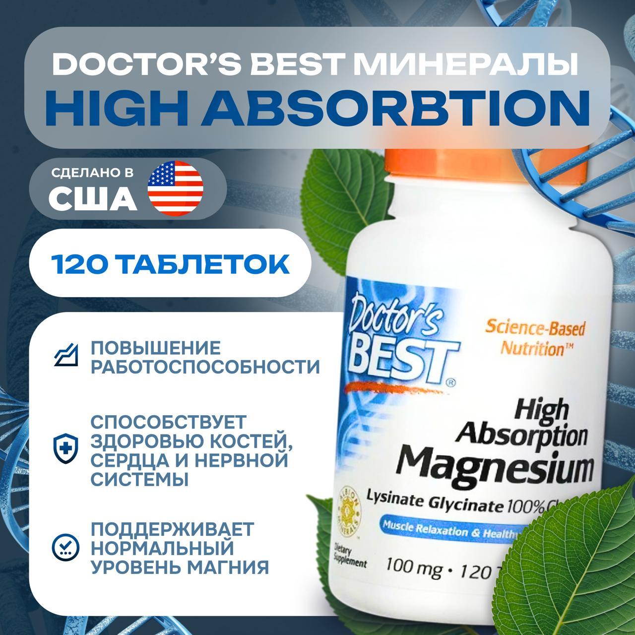 Doctor's Best, магний с высокой степенью усв...
