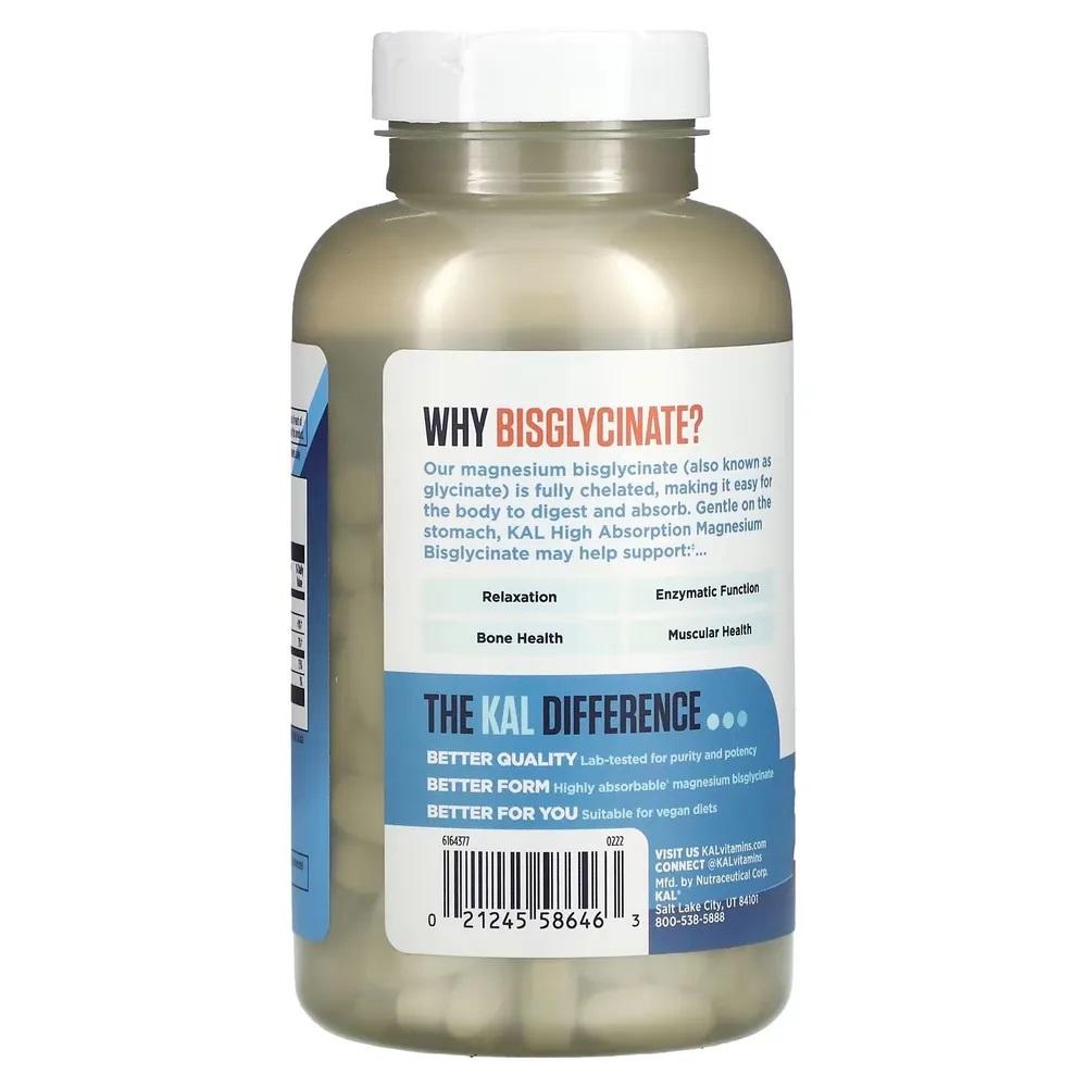 KAL, хелатный бисглицинат магния, 180 таблет...