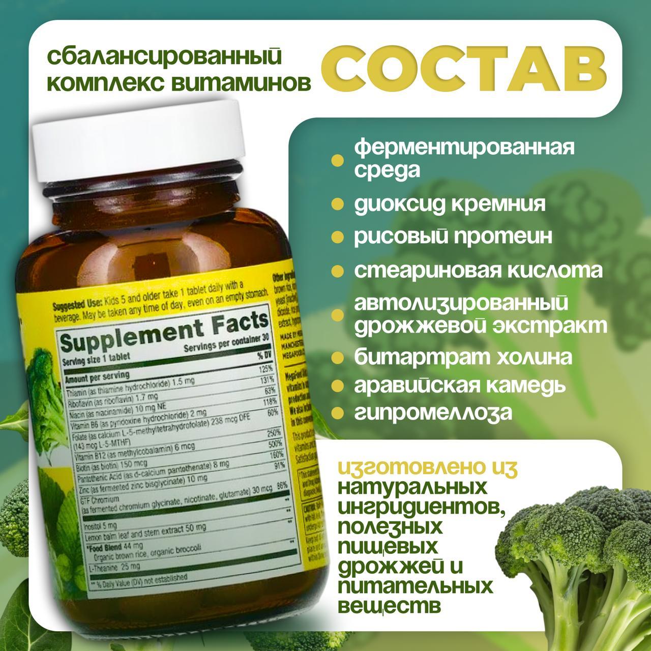 Содержит метил B12 и фолат Компания основана в 1973 году Поддерживает энергетический обмен на клеточном уровне и здоровье нервной системы Содержит все восемь витаминов группы B Пищевая добавка Протестировано на отсутствие более 150 пестицидов Без глютена Вегетарианский продукт Кошерный продукт Сертификат Certified B Corporation Комплекс витаминов группы B от MegaFood для детей содержит все восемь витаминов группы B, которые помогают преобразовывать пищу в клеточную энергию и поддерживать здоровье нервной системы. В эту удобную мини-таблетку мы также добавили цинк, L-теанин и инозитол. Изготовлено из натуральных пищевых продуктов. Рекомендации по применению Детям от 5 лет принимать по 1 таблетке в день, запивая любимым напитком. Можно принимать в любое время дня, даже на голодный желудок.