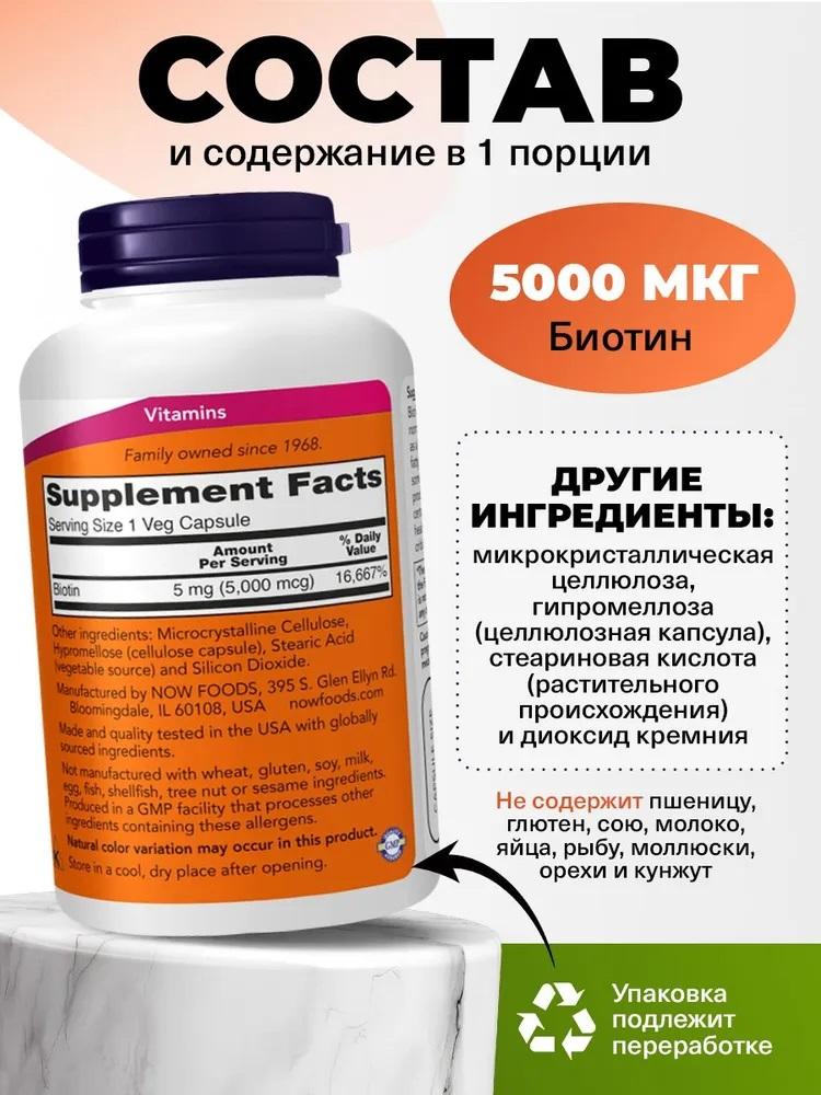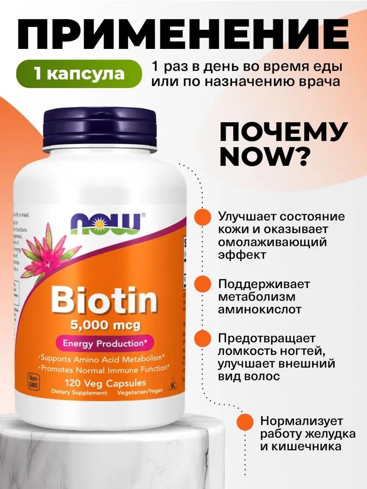 NOW Foods, биотин, 5000 мкг, 120 вегетарианс...