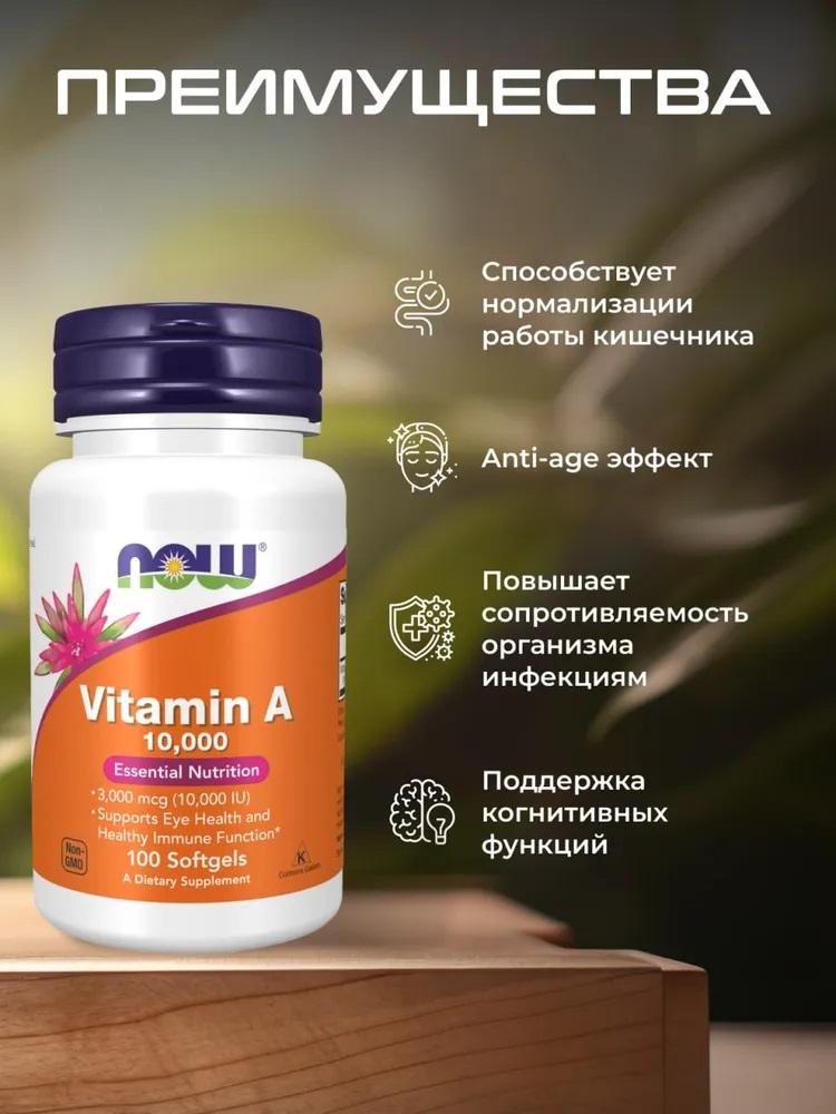 NOW Foods, Витамин A, 3000 мкг (10 000 МЕ),...