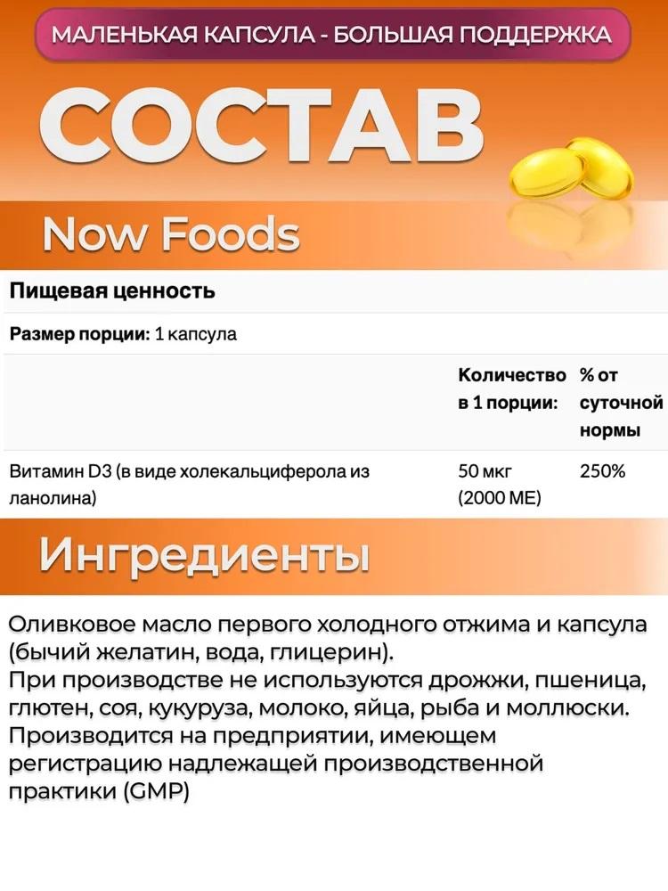 NOW Витамин D-3 2000 МЕ 240 капс (VITAMIN D-...