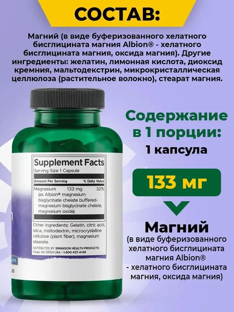 Swanson, Albion®, глицинат магния, 133 мг, 9...