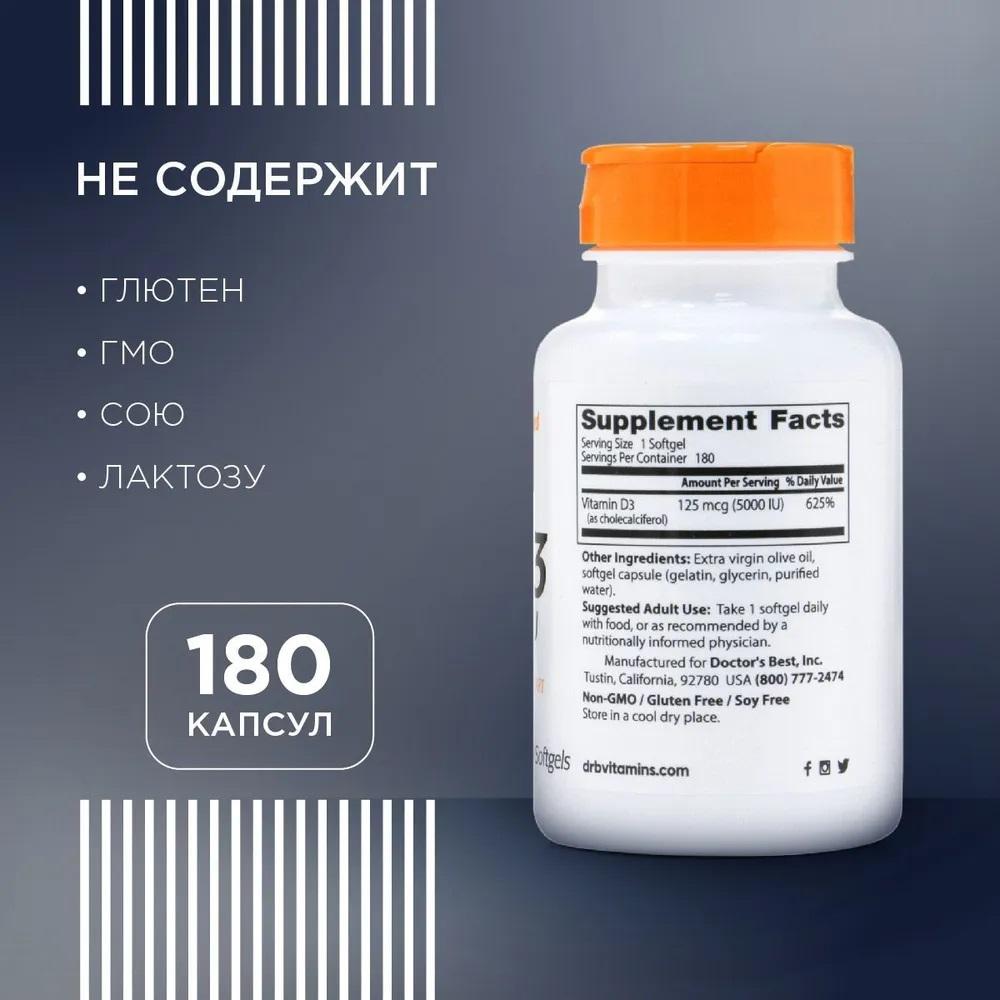 Витамин Д3 5000 МЕ 125 мкг 180 капсул Doctor...